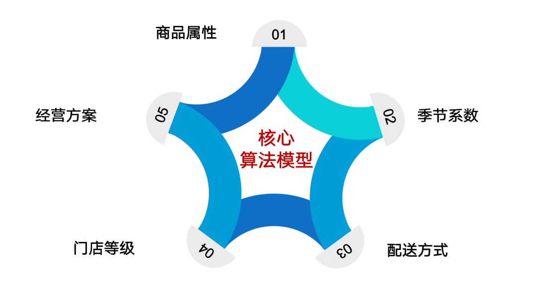这个针对快时尚百货的门店自动补货系统的核心算法模型,是将5个纬度的几十种因素进行组合后,变化出数百种方案,总有一款适合你!