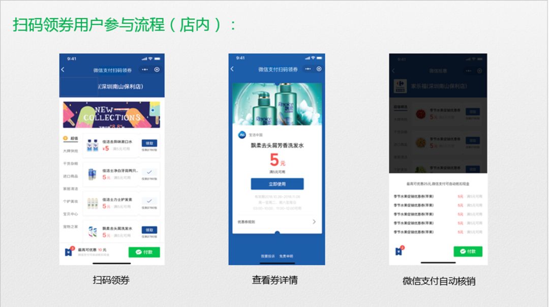 介绍:店内露出二维码,顾客扫码领券,支付时自动核销。