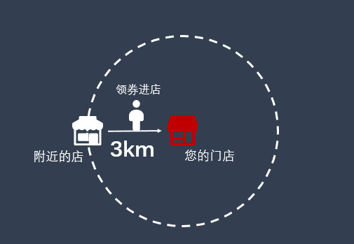 顾客在门店周围3km内其他商户完成支付后,在支付成功结果页领取门店的优惠券。