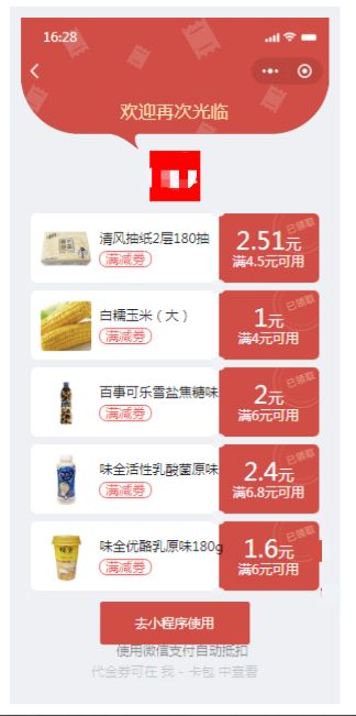 支付有礼实现深度运营,二次曝光拉动复购。顾客在店内完成支付后可以在支付页面领取优惠券。