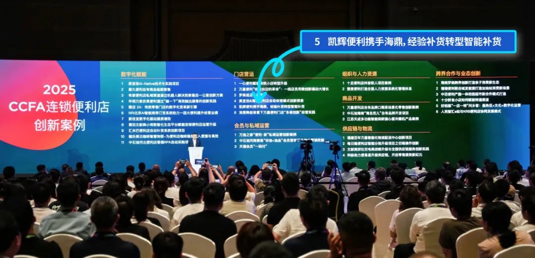 例如,在与贵州凯辉的合作中,从2019年起,双方开启了全面深度合作。千亿国际凭借自身的技术优势和专业服务,助力凯辉从最初的300家门店迅速拓展至1000多家,实现了跨越式发展。2024年,凯辉千店璀璨启航,千亿国际还荣获了“最佳战略合作伙伴奖”。千亿国际的诸多创新方案在凯辉成功落地,本次便利店大会,双方联合申报的智能补货案例成功入选“2025CCFA连锁便利店创新案例”。