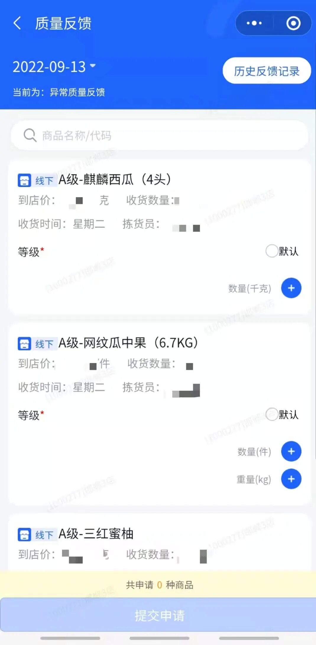 生鲜品易损耗的特性,增加了其成本分摊过程中的难度,以往门店收货时收到不符合收货标准的商品时,难以及时与总部沟通,双方在成本分摊时经常存在摩擦,千亿国际在门店助手中增加了质量反馈模块,门店收到不符合收货标准的商品时可以及时拍照上传,提报质量反馈,总部审核时,可填写补损费用及费用承担方,补损结果将直接体现当日的门店费用单中,大大减少了部门之间关于损耗承担的摩擦。